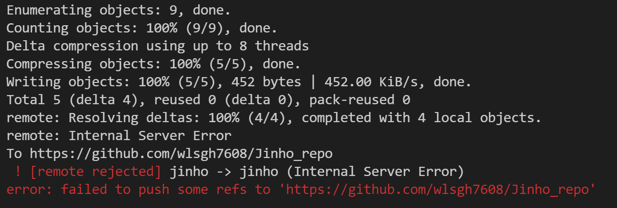 평소와 같이 개인 레포지터리에 코드를 올리려고 git push를 하였다