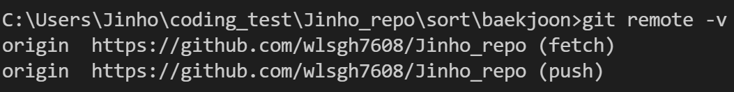 먼저 개인 저장소의 리모트를 확인