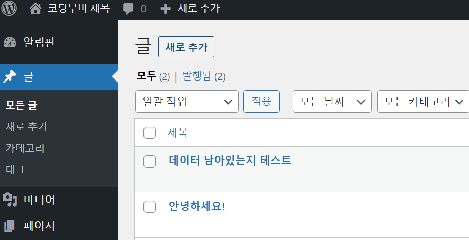 db컨테이너를 삭제하고 다시 실행시켜도 db의 데이터가 남아있는 것을 확인할 수 있다. (호스트 볼륨을 통해 데이터를 영속적으로 보관하기 때문)