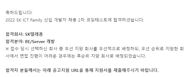 2문제를 풀었는데도 다행히 합격하였습니다. 첫 코테였지만 운이 좋았던 것 같아요.