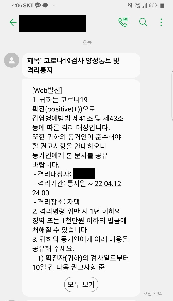 아마 코로나 격리기간이 1주로 단축되면서 격리가 끝난 형과 접촉해서 걸린 것이 아닌가 싶습니다.