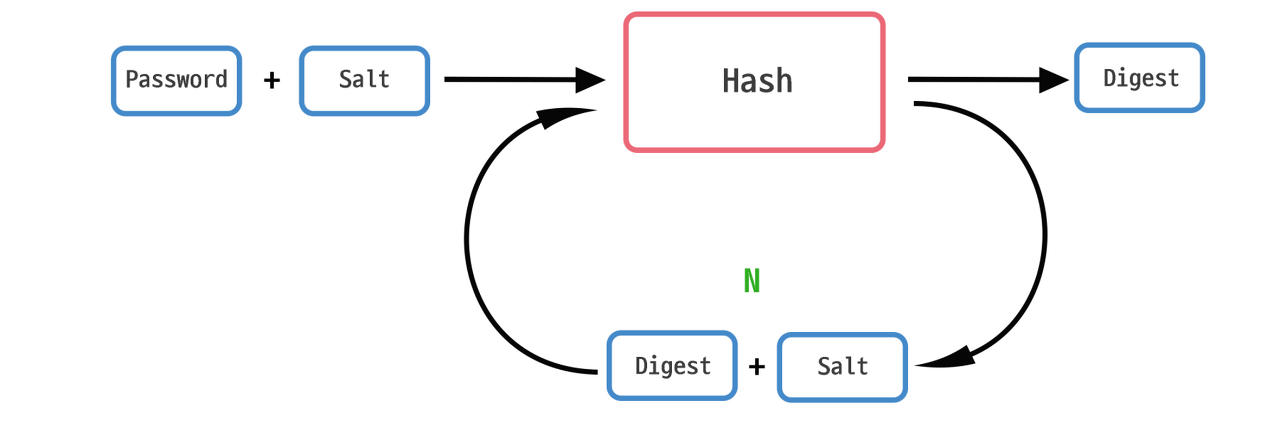 - 평문을 암호화했을 때 다시 평문으로 복호화할 수 없는 암호화인 단방향 암호화 알고리즘을 기반으로 한다.