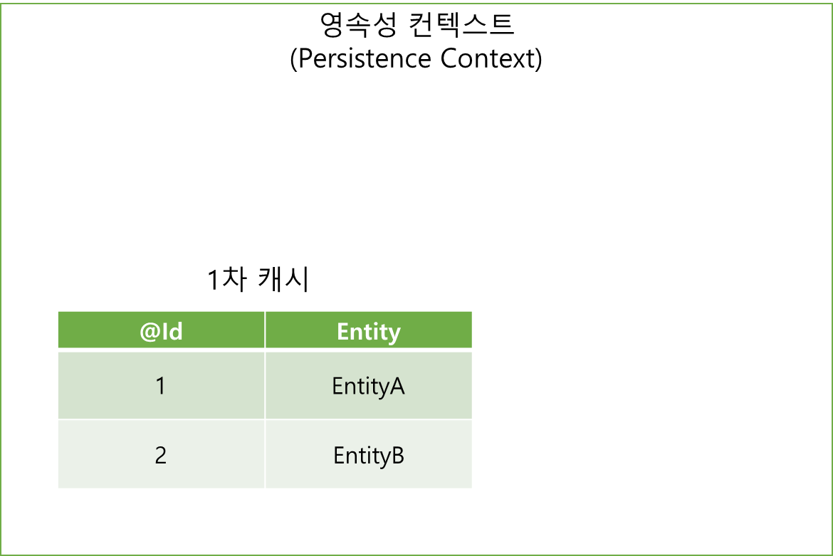 영속성 컨텍스트에서는 Key(@Id), Value(Entity) 값으로 되어 있다.