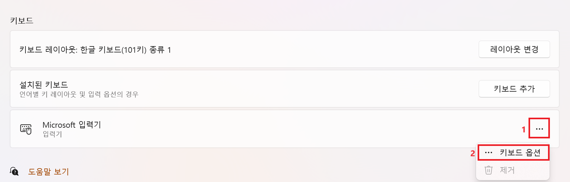 검색 > 언어 및 키보드 옵션 편집